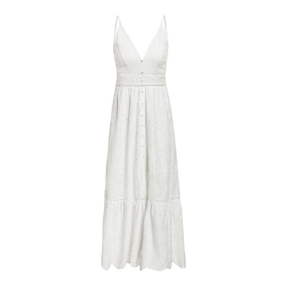 Kaunis romanttinen kesämekko rei'itetyllä kuviolla.