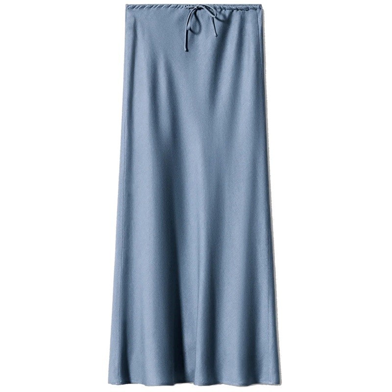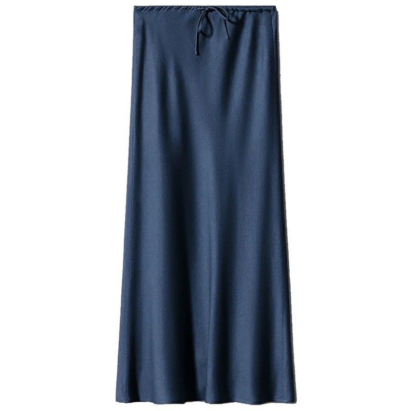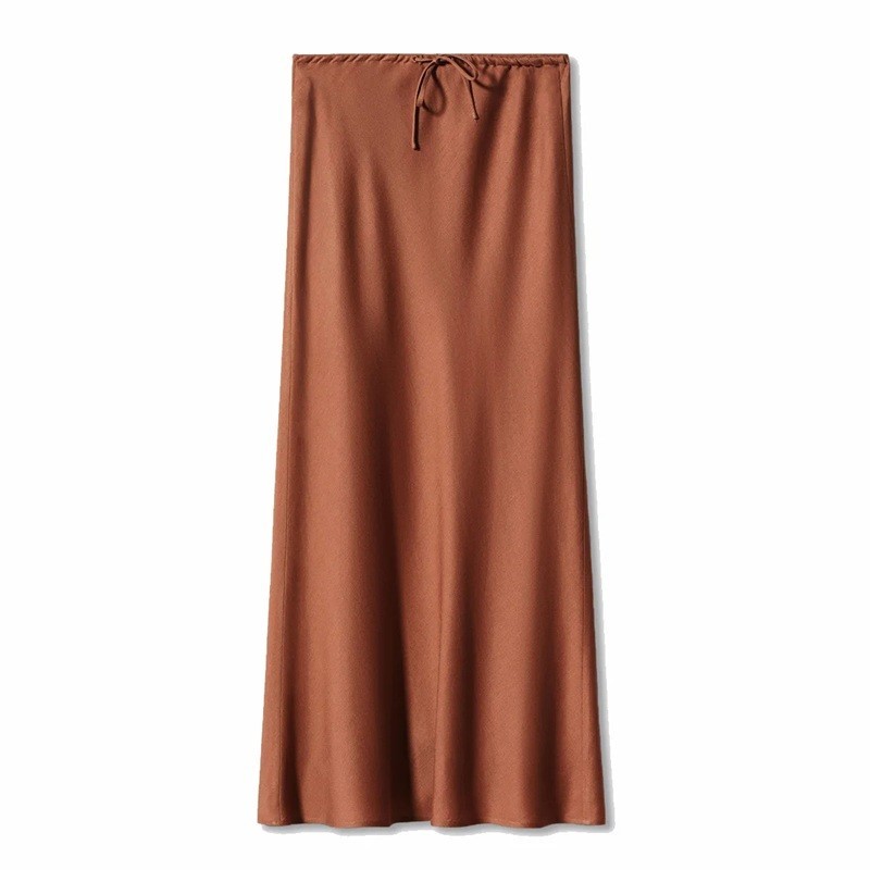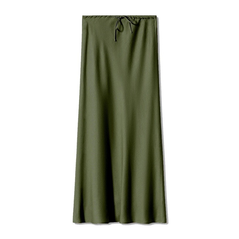 Tyylikäs pitkä, kiiltävästä satiinista valmistettu hame, jossa on korkea vyötärö ja nyöritys, korostaa siluettiasi ja lisää ylellisen ilmeen mihin tahansa asuun. Täydellinen kuvaus