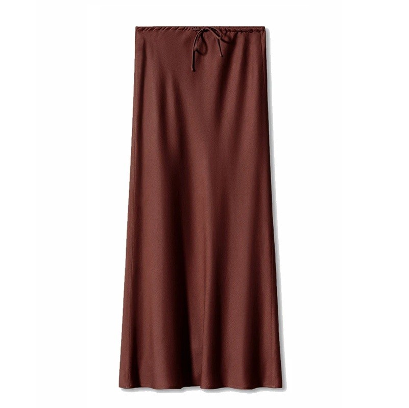 Kiiltävä pitkä hame hienosta satiinista, jossa on suora malli ja korkea vyötärö. Täydellinen valinta tyylikkäisiin iltoihin, tanssiaisiin ja juhliin. Täydellinen kuvaus