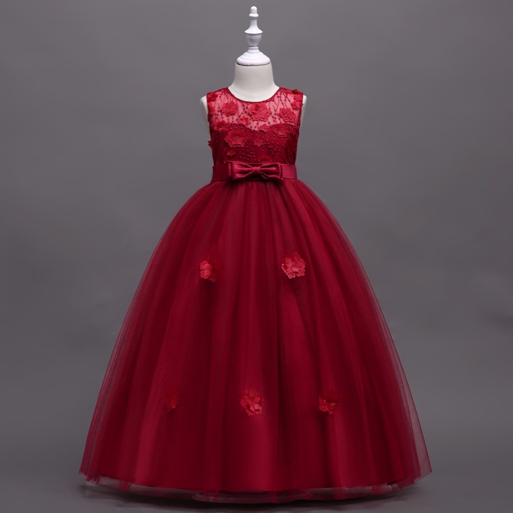 Pitkä tyttöjen mekko kukilla ja rusetilla J2901
