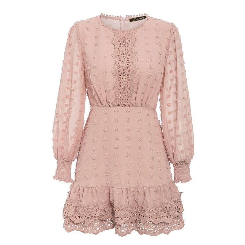 Kaunis romanttinen mekko, koristeltu pitsillä.