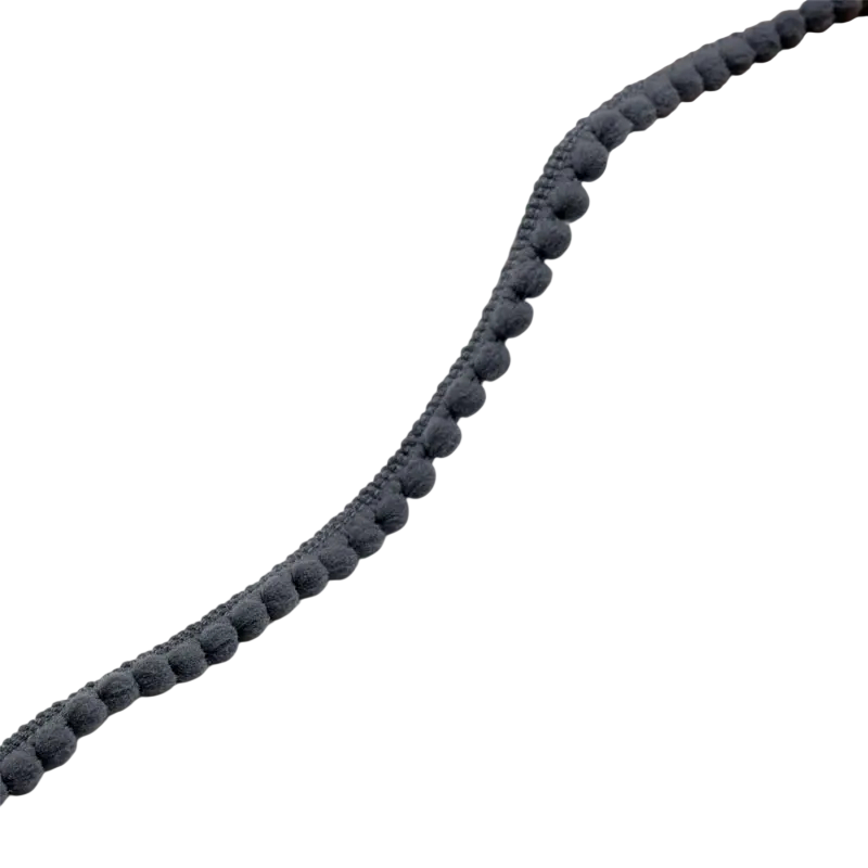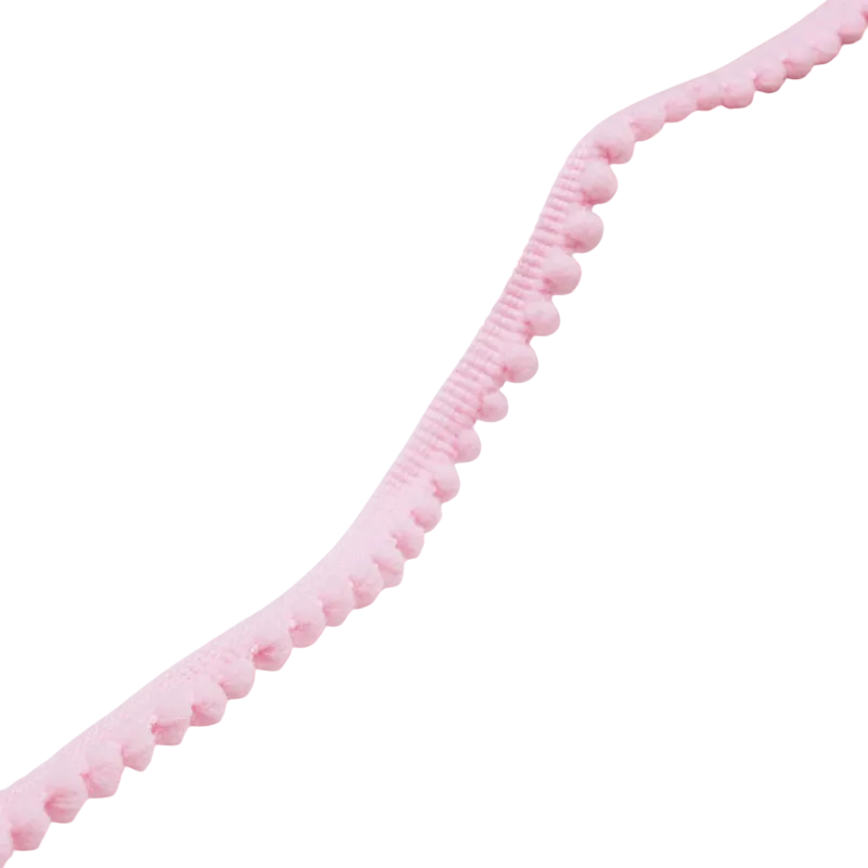 Tämä koristeellinen nauha tarjoaa yksinkertaisen tavan antaa tuotteille ainutlaatuinen ilme. Hienot pompomit luovat mielenkiintoisen yksityiskohdan, joka elävöittää tekstiilituotteita ja sisustuksia. Sen joustavuuden ansiosta se sopii erilaisille materiaaleille ja projekteille.