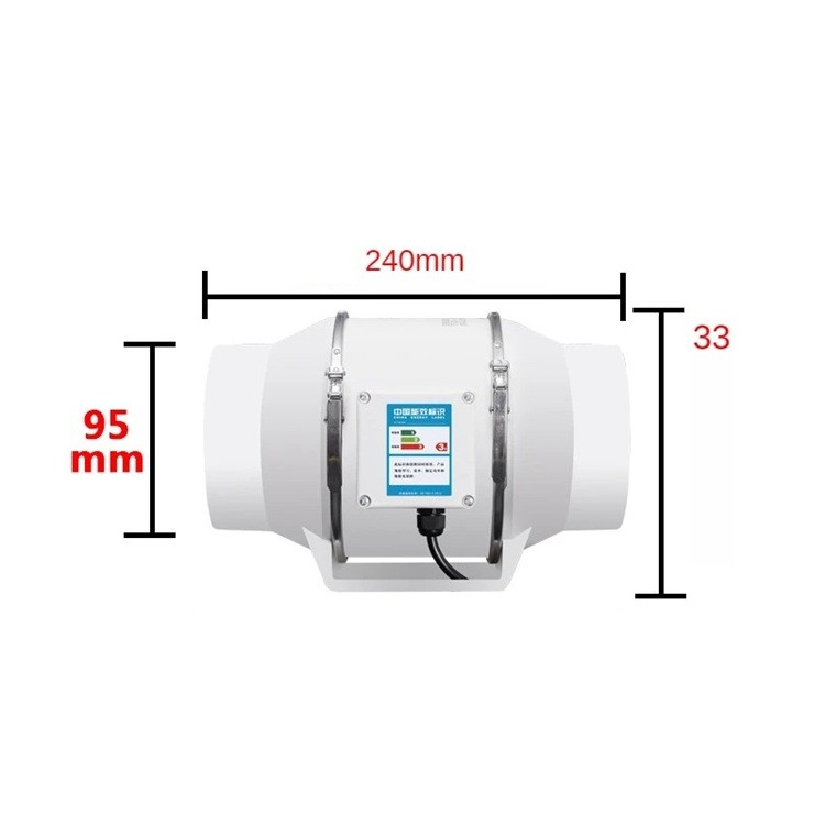 Poistoilmapuhallin 240x95 mm 35 W Hiljainen putkipuhallin 2600 rpm 200 m³/h Kotitalouden kylpyhuone- ja keittiöseinäpuhdistin