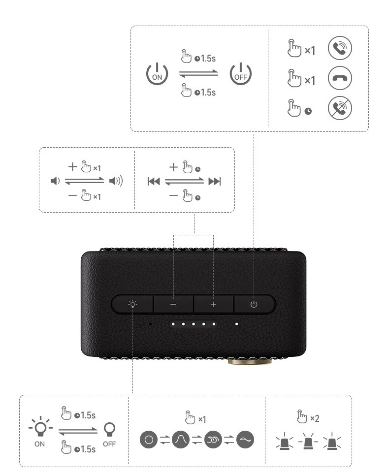 Tyylikäs pöytä LED-lamppu sylinterimäisessä muodossa yhdistää miellyttävän ympäristövalaistuksen ja musiikin toiston yhdessä laitteessa. Kompaktin koon ansiosta se sopii yöpöydälle, työpöydälle ja olohuoneeseen. Voit helposti vaihtaa valotiloja ja ohjata toistoa kosketuksella tai kauko-ohjaimella. Värilliset valotehosteet auttavat luomaan tunnelmaa rentoutumiseen, lukemiseen ja iltaiseen rauhoittumiseen. Kätevä USB-virransyöttö helpottaa käyttöä kotona ja matkalla.