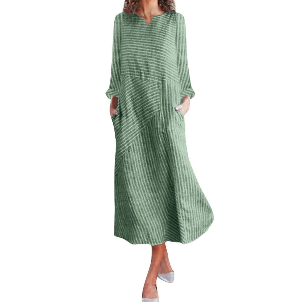 Mukava naisten mekko, jossa on raidallinen kuvio.
