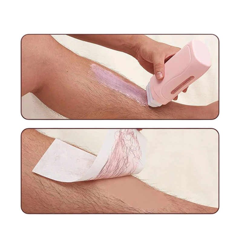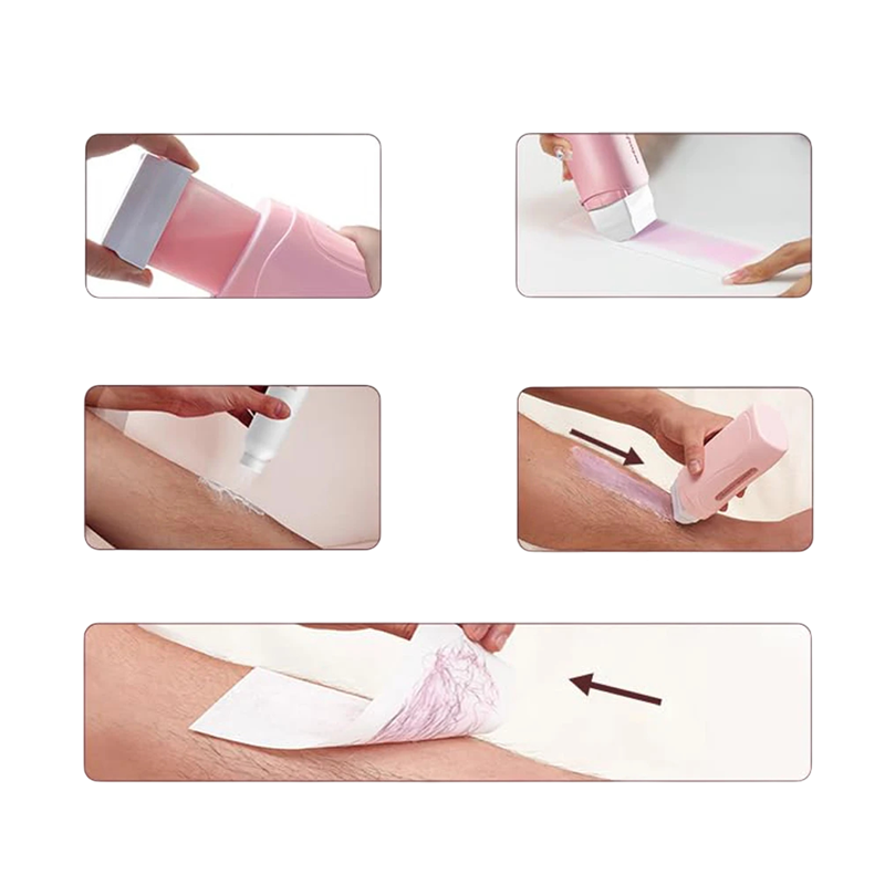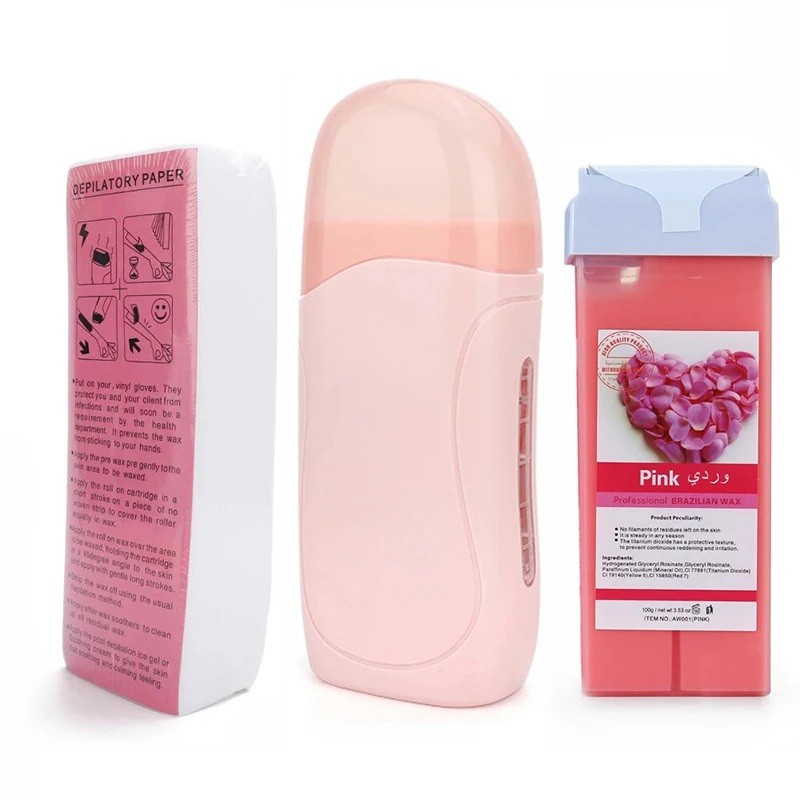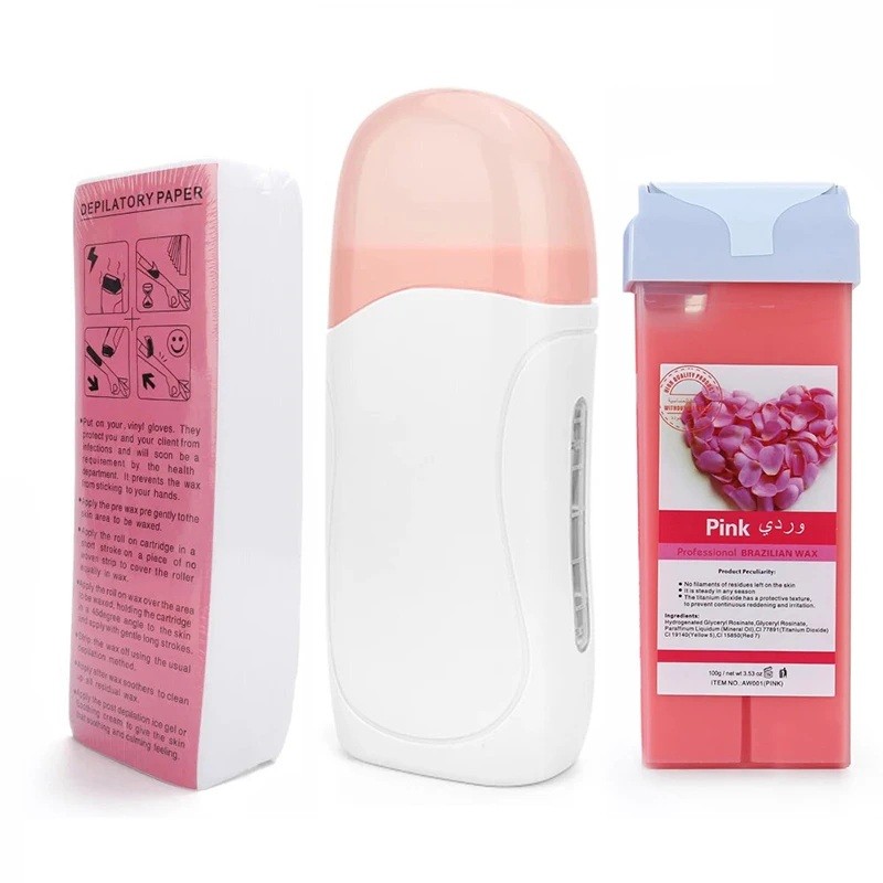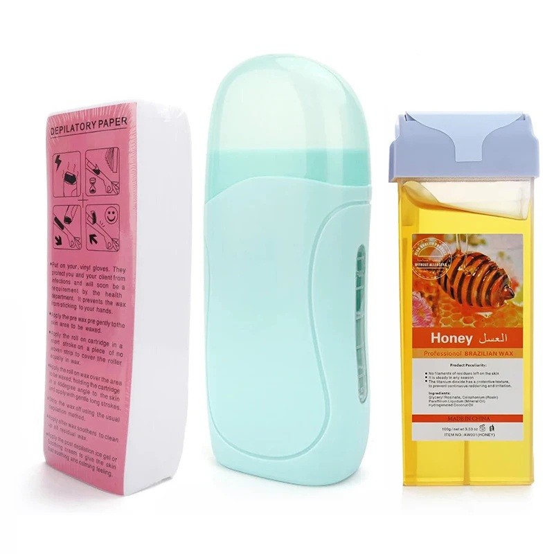 - Pakkauksen sisältö: 1× roll-on-vahakuumilämmitin, 1× vahakotelo, 100× depilaatioteippiä