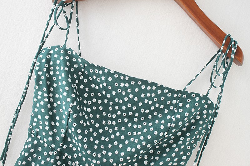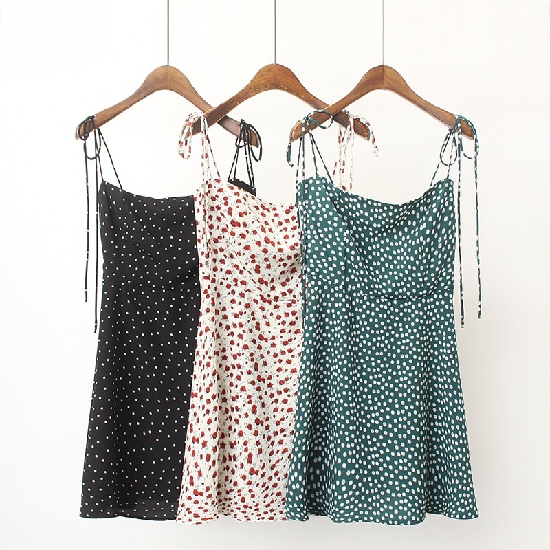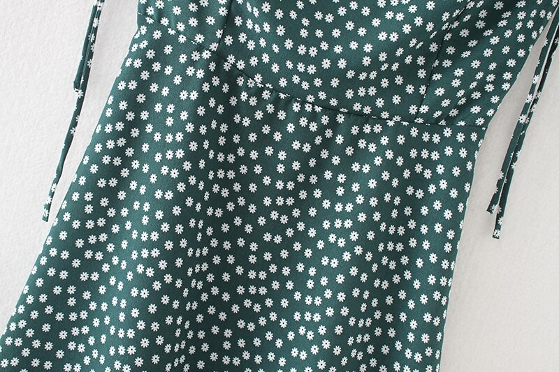 Romanttinen lyhyt kesämekko pienellä painatuksella.