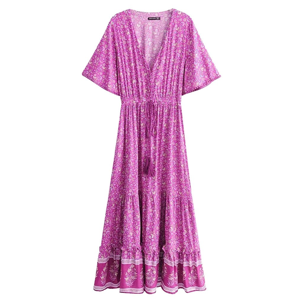 Pitkä kesäinen maksimekko lyhyillä hihoilla.