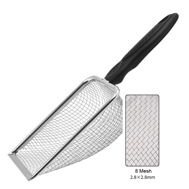 Ruostumaton verkko-lapio 27,5 x 10 x 5 cm matelijoille, metallinen lapio terraarion puhdistamiseen, silmäkoko 2,8 x 2,8 mm
