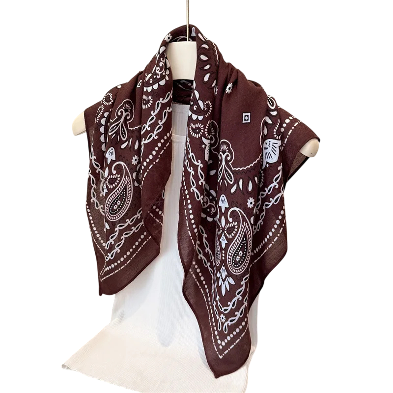 Pehmeä neliöhuivi paisley-kuvioinnilla 70 × 70 cm tyylikkäänä kaulahuivina, kevyenä huivina ja tyylikkäänä koristeena ympäri vuoden. Täydellinen kuvaus