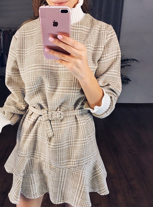 Naisten syyspoolomekko röyhelöisellä helmaosalla.