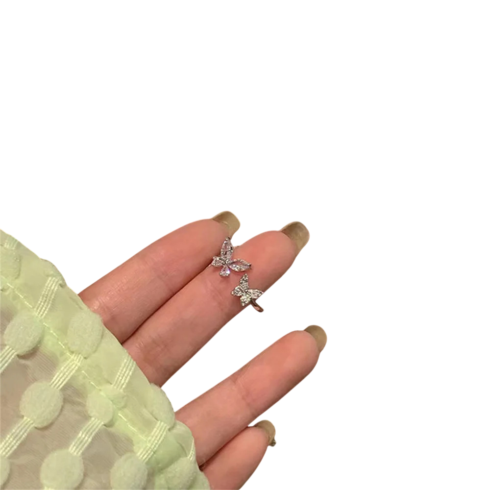 Säädettävä koko Avoin naisten sormus perhosilla Kimaltelevat koristekivet Tyylikäs koru jokapäiväiseen ja juhlavaan käyttöön