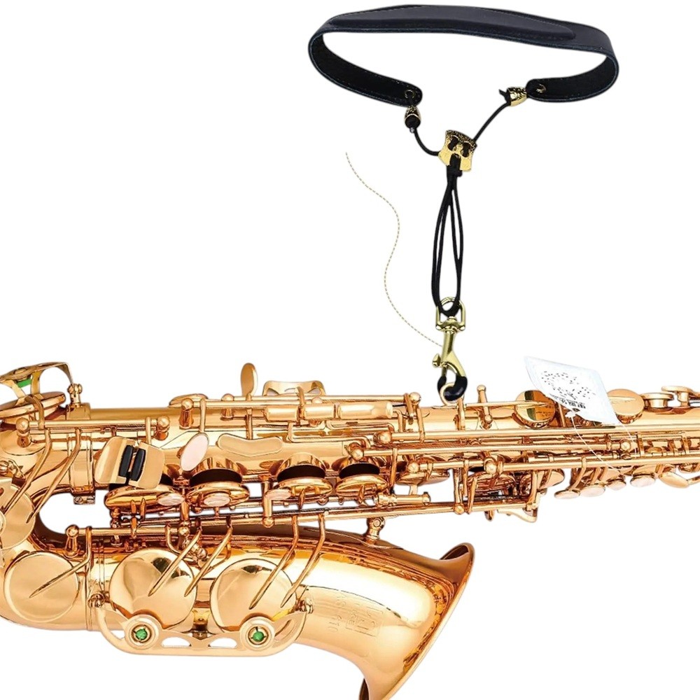Saksofonin kaulapanta 4,5 cm leveys ja 40 cm pituus Ammattimainen pehmeä nahkapehmustus altto, tenori, sopraano, baritoni Vankka nyloninen valjaat