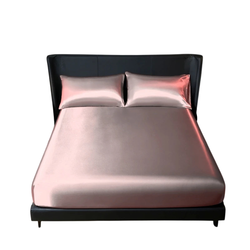 Satiinisella pinnalla varustettu vuodevaatesetti, jossa on kuminauha 140 x 200 cm + 2x tyynyliina 50 x 75 cm Kiiltävä ja sileä