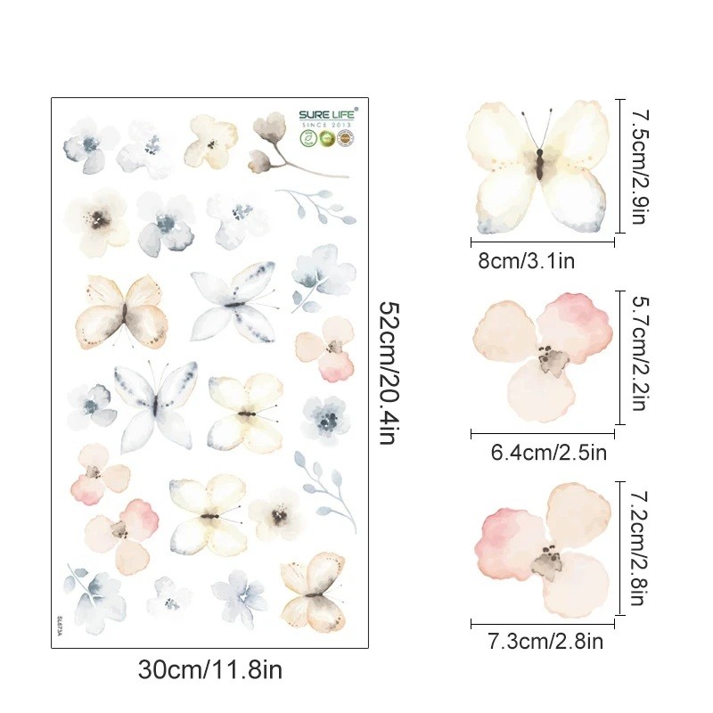 Tarrat on helppo asentaa – tarvitaan vain sileä, puhdas ja kuiva pinta, johon ne yksinkertaisesti painetaan. Koristeet pysyvät tiukasti paikoillaan, mukautuvat hyvin taustaan ja ohuen materiaalin ansiosta asennus voidaan tehdä ilman kuplia tai näkyviä reunoja. Läpinäkyvä matta vinyyli varmistaa, että tarrat sopeutuvat seinän väriin eivätkä näytä häiritseviltä, mikä mahdollistaa niiden käytön sekä vaaleissa että tummemmissa sisätiloissa. Materiaali on myös kestävä, helppohoitoinen ja sopii tiloihin, joissa on lisääntynyttä kosteutta.