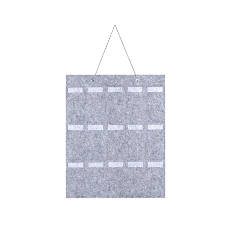 - Pakkauksen sisältö: 1× seinään kiinnitettävä taitettava silmälasien järjestäjä (15 taskua)