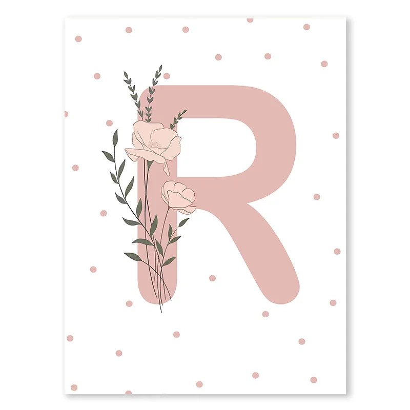 Minimalistinen koristeplakaatti, jossa on kirjain „R“ ja herkkä kukkakuosi, on elegantti lisä tyttöhuoneeseen sekä moderneihin lasten sisustuksiin. Yksinkertainen graafinen toteutus puhtaalla taustalla luo ilmavan tunnelman ja rauhallisen ympäristön, joka tukee harmonista ilmaa. Komposition hallitseva elementti on vaaleanpunainen kirjain „R“, joka antaa koristeelle henkilökohtaisen luonteen ja herkän värillisen yksityiskohdan. Korkealaatuinen kangastoteutus tekee plakaatista tyylikkään ja samalla se tarjoaa suuremman kestävyyden kuin tavalliset paperiversiot. Kompakti koko on ihanteellinen pienille seinille tai osana galleriasettiä useista kuvista.