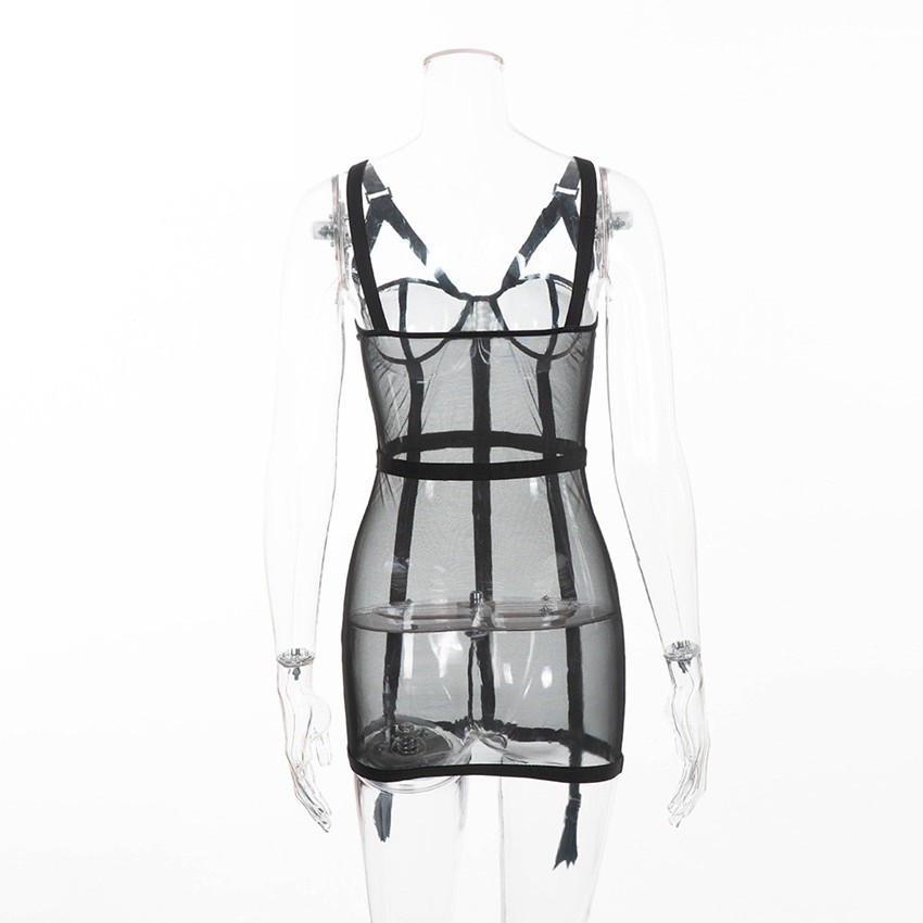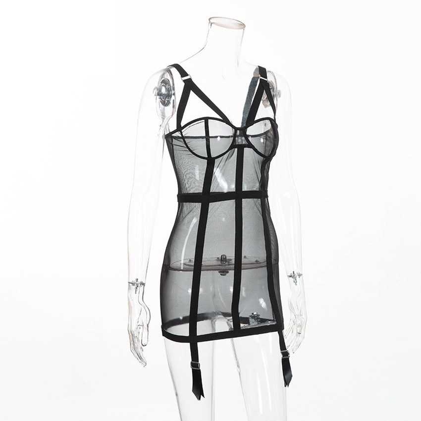 Tämä läpikuultavasta materiaalista valmistettu minimekko, jossa on hienostuneet olkaimet, on täydellinen valinta.