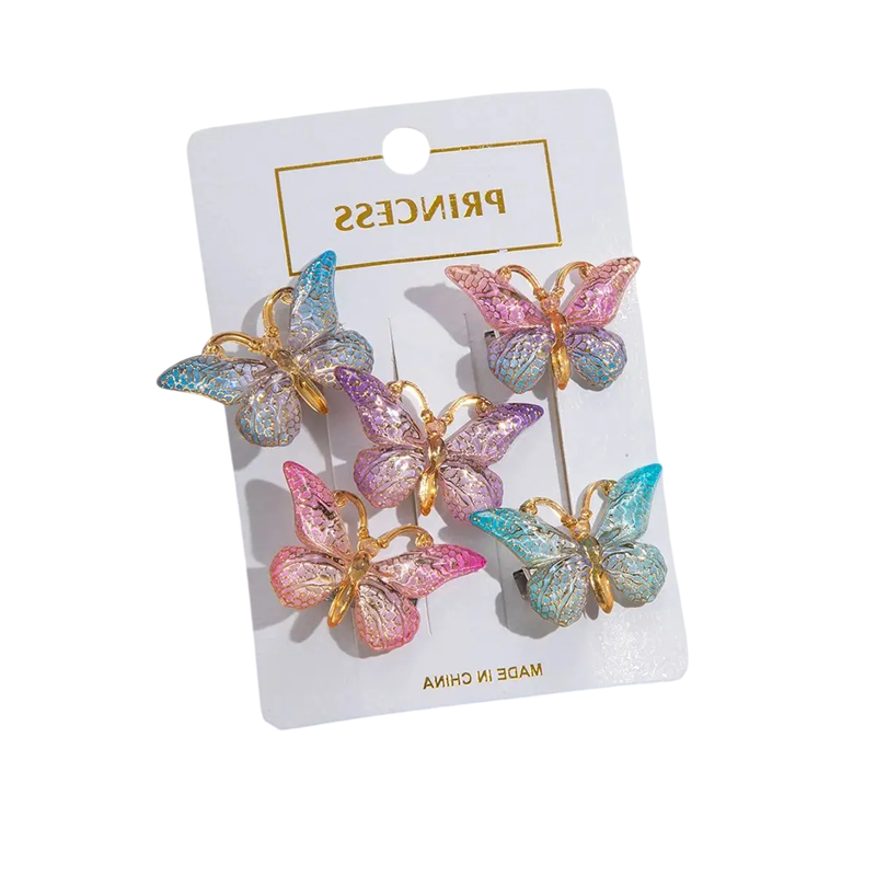 Setti 5 kpl perhosklipsit hiuksiin 4 × 2,5 cm Värisiirtymä Muoviset suloiset hiuslisävarusteet