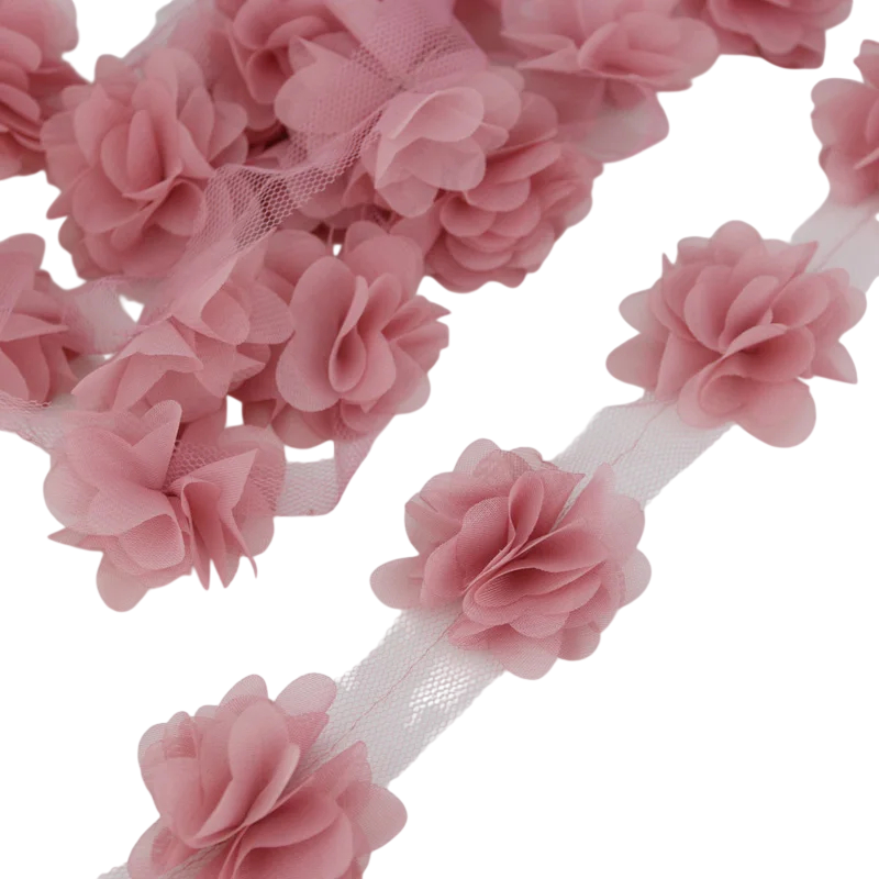 Koristeellinen sifoninen nauha kukkan terälehdillä on ihanteellinen vaatteiden koristeluun, häiden koristeisiin, luoviin DIY-projekteihin ja käsityöhön. Täydellinen kuvaus
