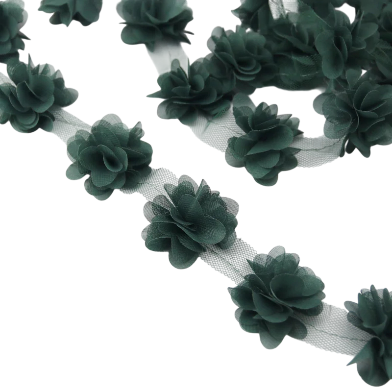 Tämä koristeellinen kukkanauha on ihanteellinen valinta kaikille, jotka haluavat lisätä projekteihinsa hienostuneen ja romanttisen yksityiskohdan. Sifonikukkien ansiosta se luo elegantin koristeellisen vaikutelman, joka sopii muotiin ja koristeelliseen käyttöön. Nauha sopii sekä ammattimaiseen ompeluun että luovaan käsityöhön. Sen monipuolinen muotoilu mahdollistaa laajan käytön lisävarusteiden ja koristeiden valmistuksessa. Jos etsit tyylikästä kukkanauhaa luoviin projekteihin, tämä vaihtoehto on erinomainen valinta.