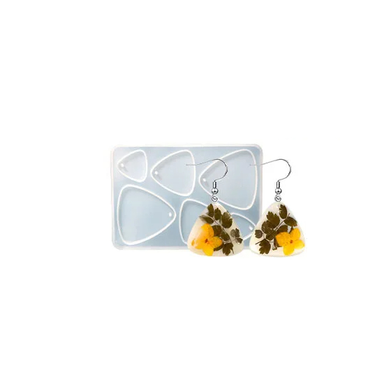 Silikonimuotti 10,4 x 7,4 cm kolmionmuotoisten riipusten valamiseen hartsista, koloja lenkkireiällä. Ihanteellinen korujen ja koristeiden valmistukseen. Täydellinen kuvaus