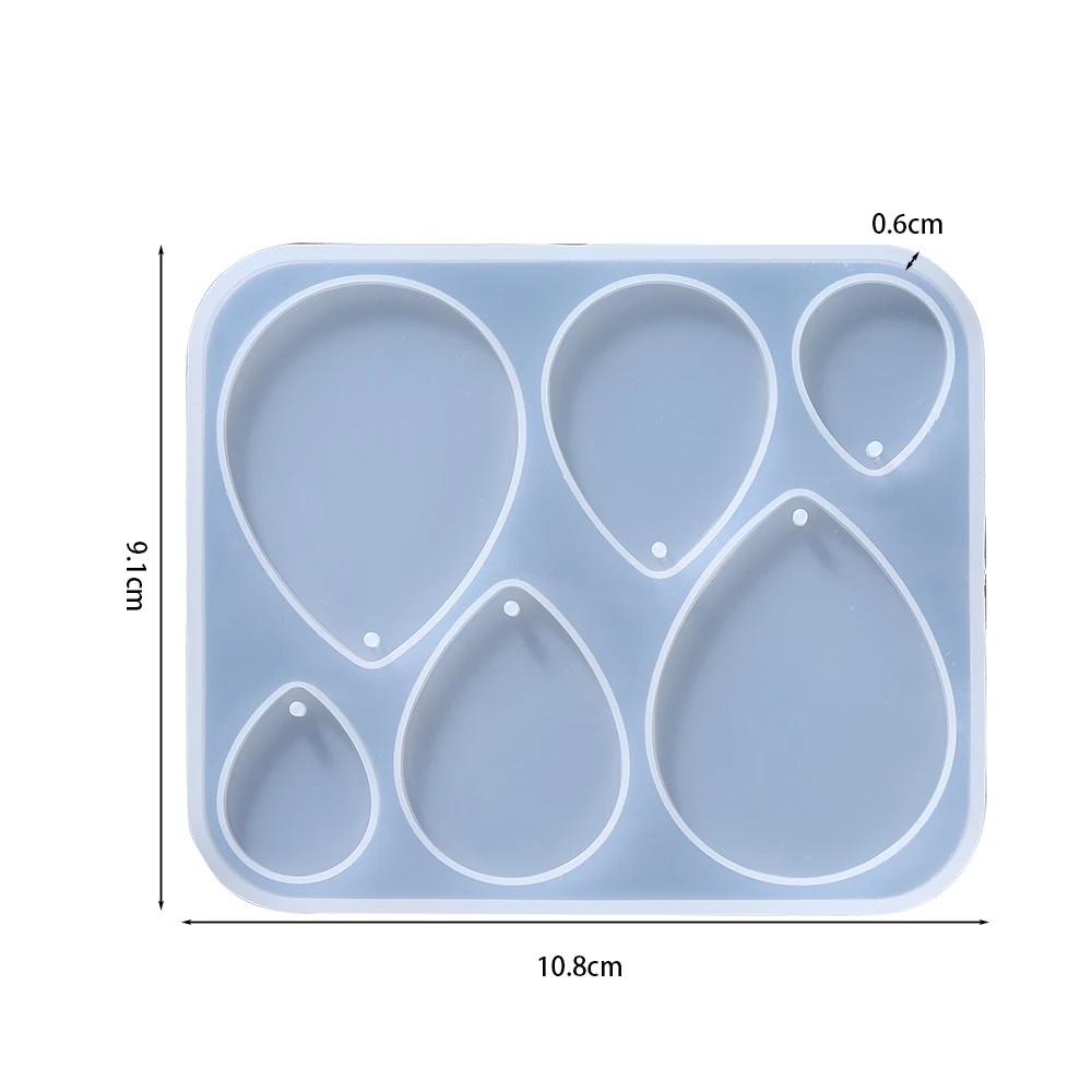 Tämä silikonimuotti, jonka mitat ovat 10,8 x 9,1 cm, on ihanteellinen tipun tai kyynelen muotoisten riipusten valmistukseen epoksista. Se sisältää useita koloja eri kokoisina, joista jokaisessa on silmukkareikä. Tämän ansiosta valmiit valokset voidaan helposti liittää korvakoruihin, ketjuihin tai koristeellisiin lisäosiin. Silikoni on joustavaa, kestävää ja takaa epoksin helpon poistamisen sileällä pinnalla ilman lisäkäsittelyä.