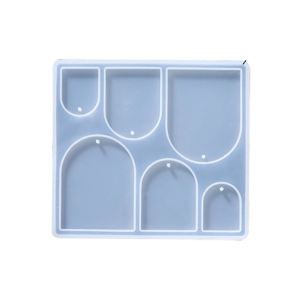 Tämä silikonimuotti, jonka mitat ovat 10,8 x 9,9 cm, on tarkoitettu kaarevien riipusten luomiseen hartsista. Se sisältää kuusi eri kokoista onkaloa, ja kaikissa on reikä lenkille, mikä helpottaa ripustamista ilman lisämuokkauksia. Muotti on ihanteellinen korvakorujen, kaulaketjujen, avaimenperien tai muiden luovien koristeiden valmistukseen. Valmistettu laadukkaasta joustavasta silikonista, joka on kestävä ja helppo puhdistaa, mahdollistaa valmiiden valosten helpon poistamisen sileällä pinnalla.