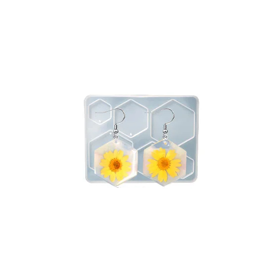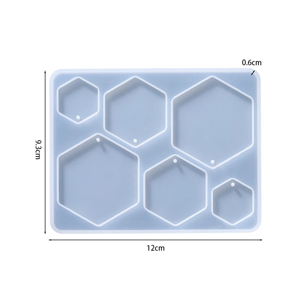 Silikonimuotti 12 x 9,3 cm Kuusikulmaiset riipukset Muotti hartsille, jossa on reikiä lenkille Korujen, korvakorujen ja koristeiden valmistukseen