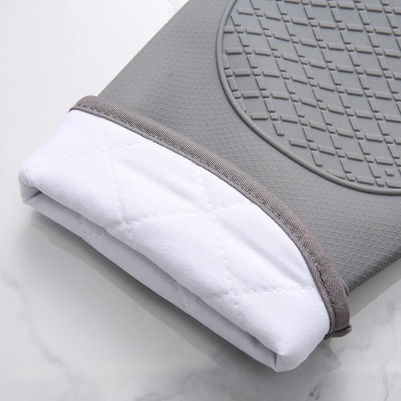 Lämpöä kestävä silikonikäsine suojaa käsiä ruoanlaiton, leivonnan ja grillaamisen aikana, varmistaa turvallisen otteen ja mukavan käsittelyn kuumien astioiden kanssa. Täydellinen kuvaus