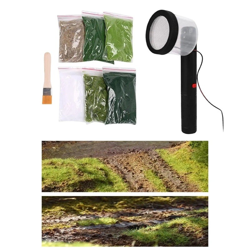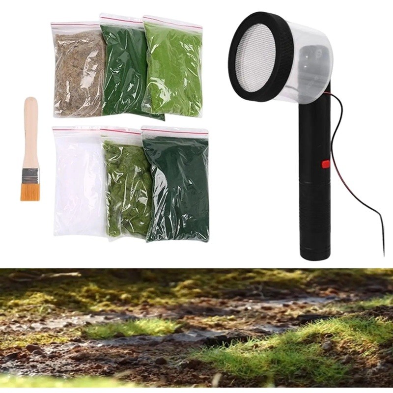 • Pakkauksen sisältö: staattisen ruohon applikaattori, 6 pussia ruoho kuituja, sivellin