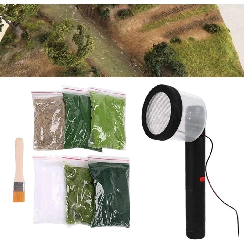 Staattisen ruohon applikaattori 24,5 x 7,3 cm Diorama-mallinnustyökalusetti 6 pussia staattista ruohoa ja sivellin