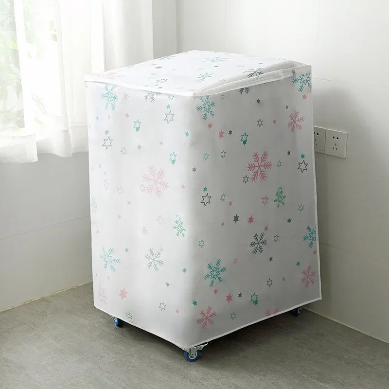 Suojapeite ylhäältä täytettävälle pesukoneelle 86 x 62 x 55 cm Lumihiutalemotiivilla Vetoketju ylhäällä ja edessä PEVA pölyltä ja likaantumiselta