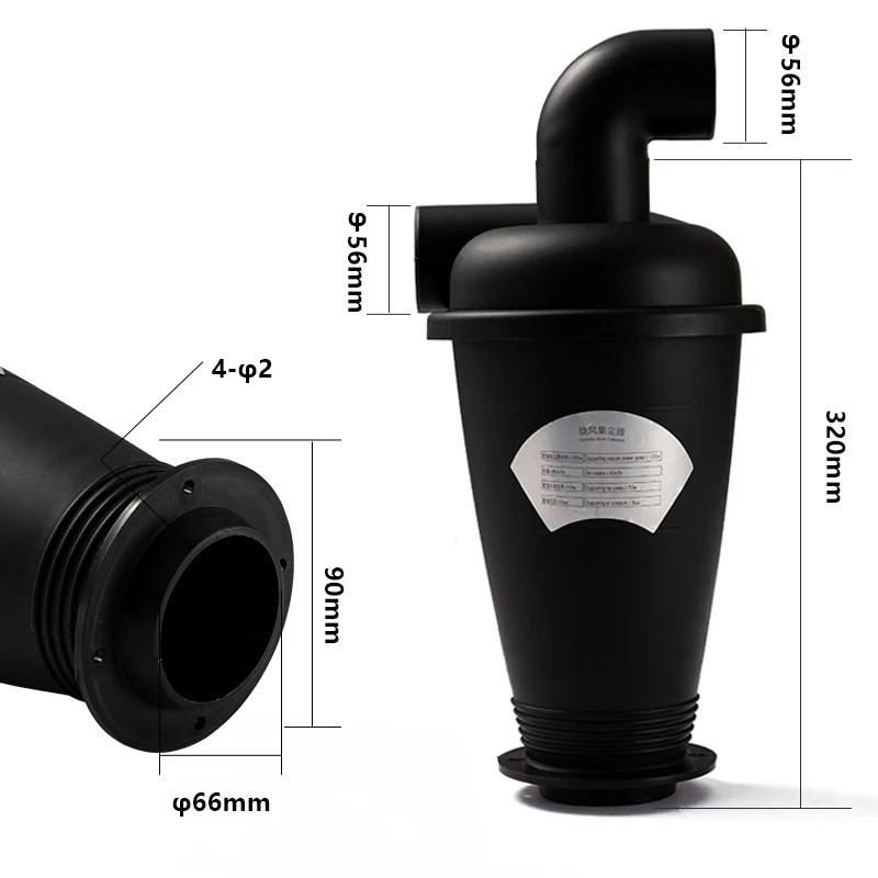 Sykloninen pölynerotin 320 mm 90° kulmalla Työhuoneen imuri Tehokas epäpuhtauksien erotin Letkuliitännät Asennussarja