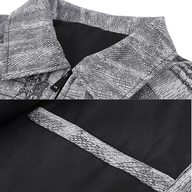Syksyn miesten takki harmaa Poslední večeře -maalauksen kuvioinnilla vetoketjulla ja kauluksella unisex naisille ja miehille POLYESTER