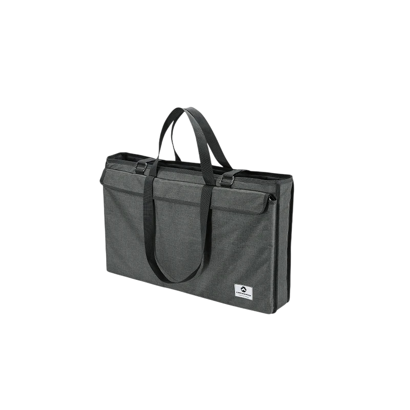 Suuri, kokoontaitettava harmaa laukku, jolla on monikäyttöisyys. Ihanteellinen ostoksille, matkustamiseen, tavaroiden säilytykseen ja helppo kantaa olkapäällä. Täydellinen kuvaus