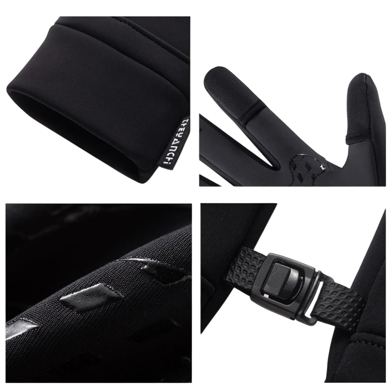 Talvirukkaset kosketusnäytölle Vesitiiviit tuulenpitävät lämpimät rukaset liukastumisenestolla ja vetoketjullisella taskulla Mustat miehille Polyesteri