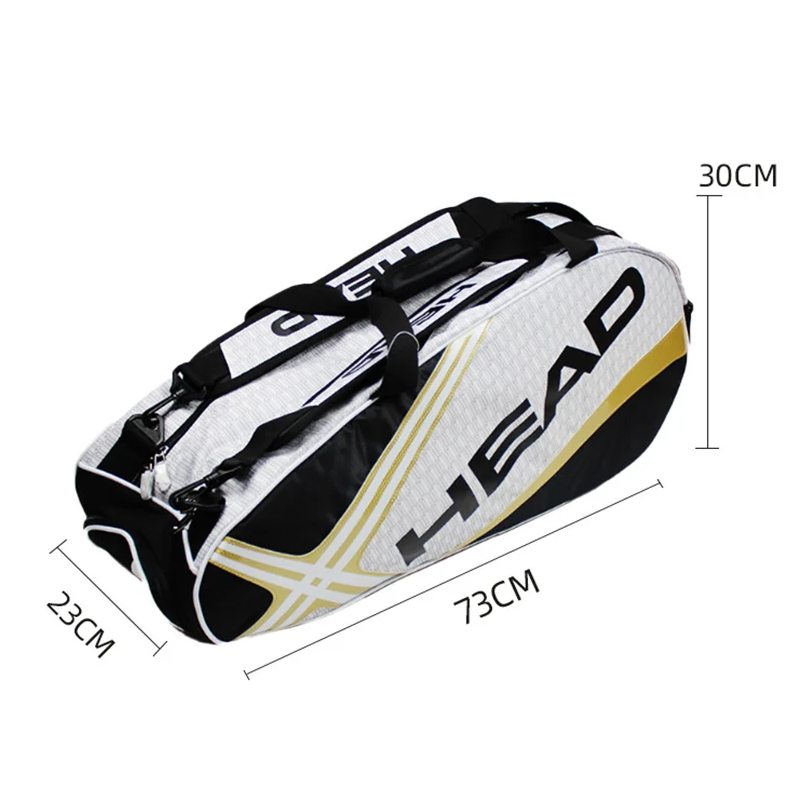 Käytännöllinen urheilukassi mahtuu jopa 6 mailaa. Siinä on erillinen kenkätasku, kestävä materiaali ja riittävästi tilaa tennistarvikkeille. Täydellinen kuvaus