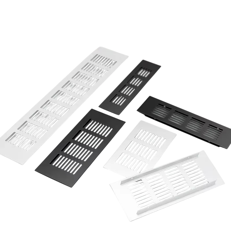 Tuulettimen kansi alumiiniseosta 80 mm x 500 mm, ilmanvaihtohäkkä optimaalisen ilman kierron varmistamiseksi suljetuissa tiloissa