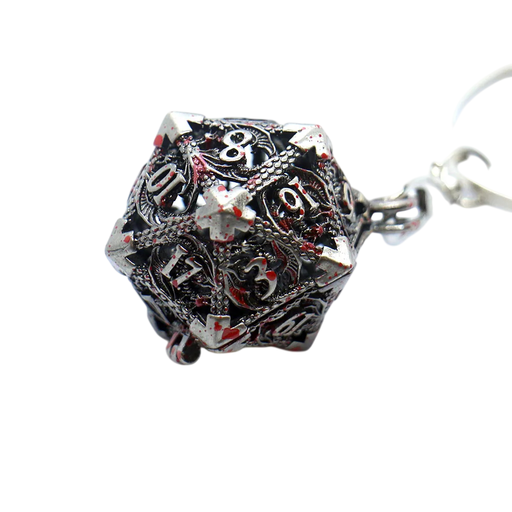 Tyylikäs fantasia lisävaruste liikkuvilla mini noppilla sisällä, täydellinen RPG:n, pöytäpelien ja teemallisten avaimenperien faneille. Täydellinen kuvaus