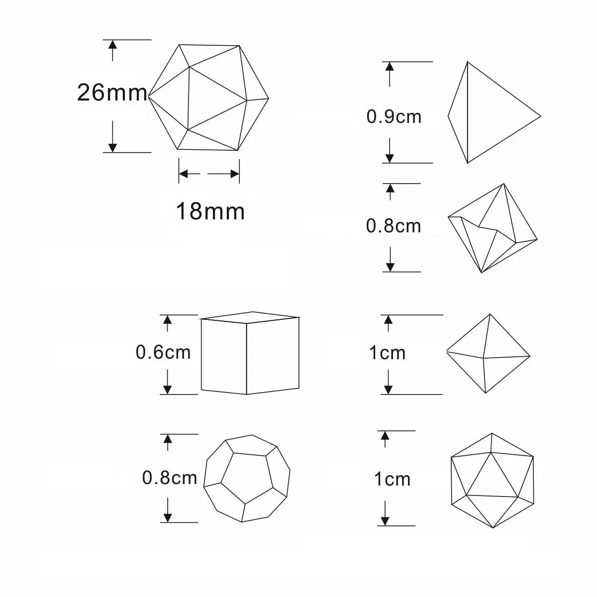 • Sisällä on 7 mini monikulmaista noppaa, jotka sopivat koristeelliseksi pelimotiiviksi