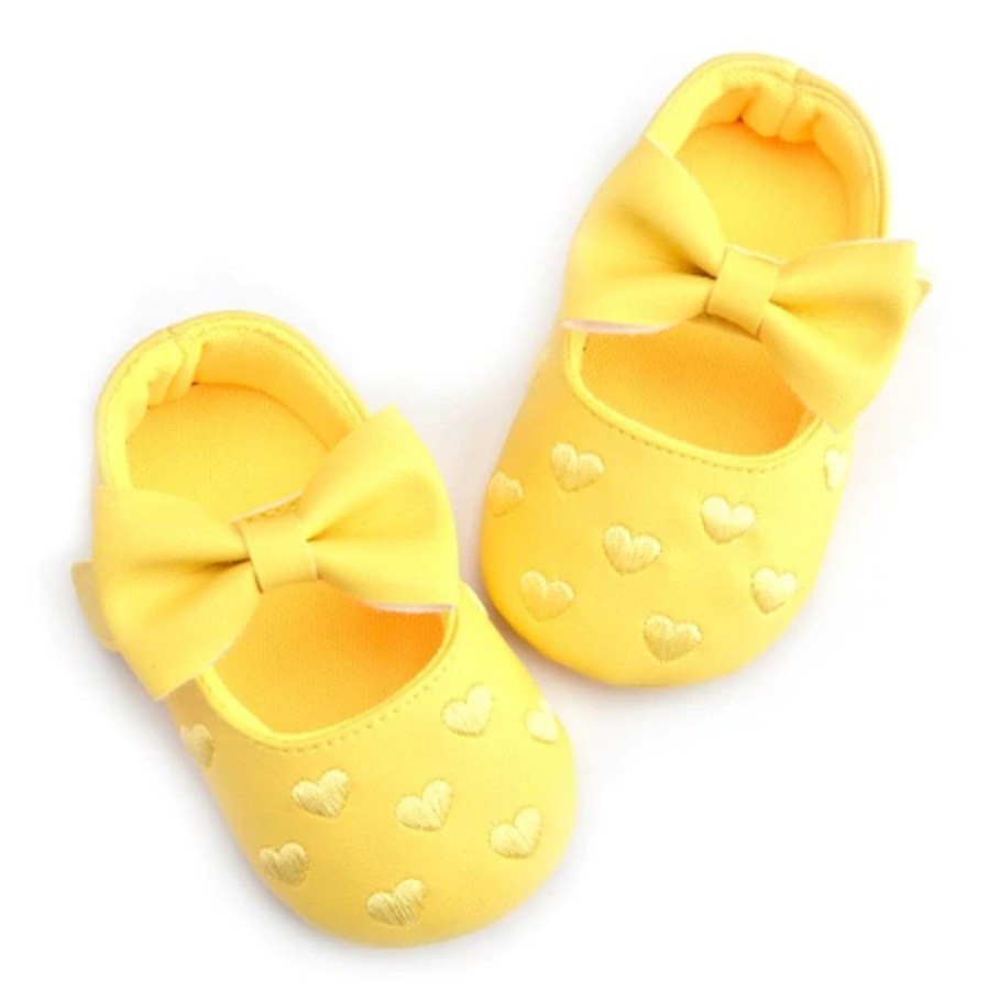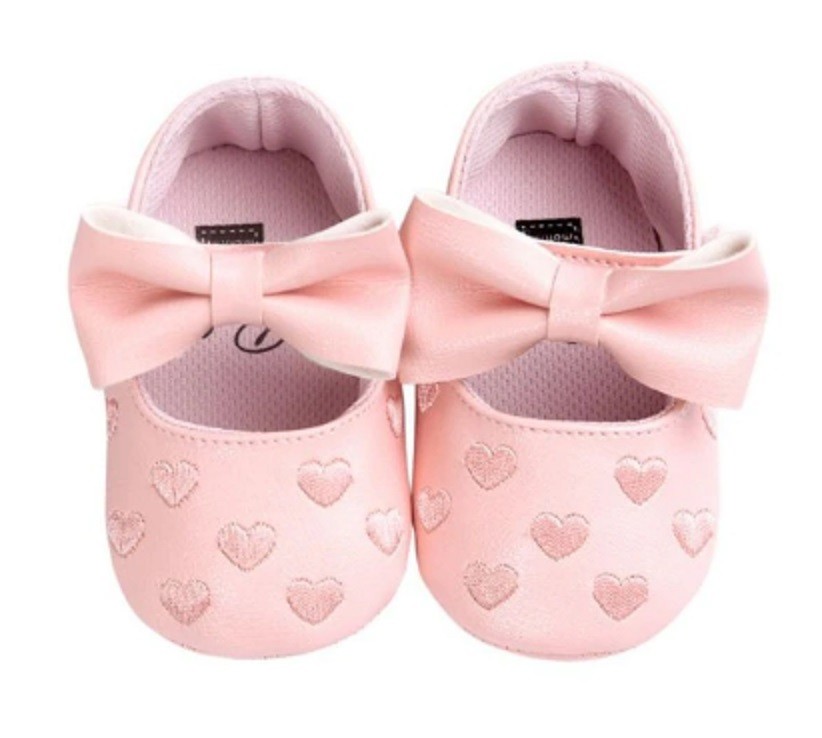 Sydämillä koristellut tyttöjen nahkatossut ovat pienimpienkin tyttöjen arvoisia.