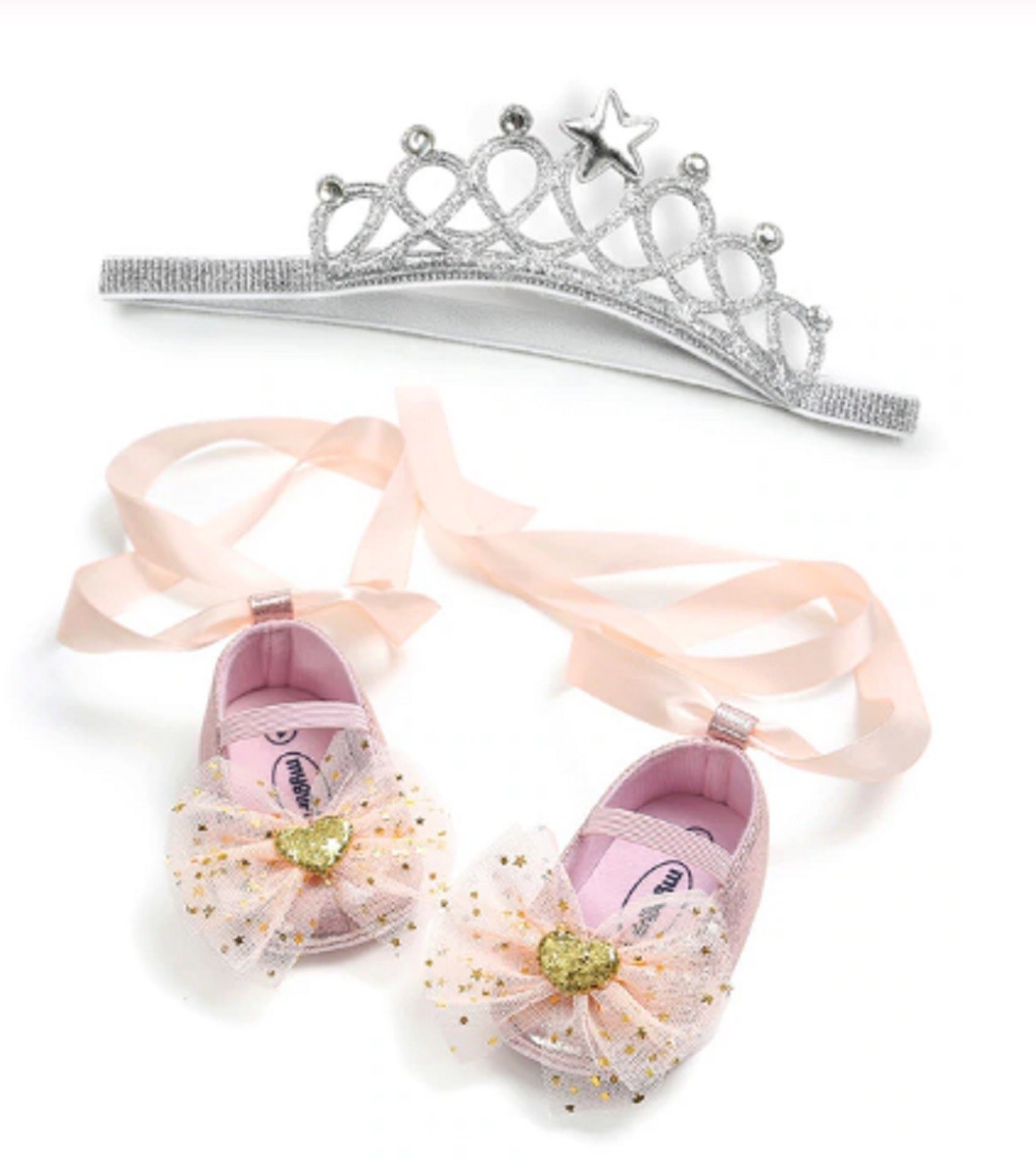 Tyttöjen tossut + pääpanta muuttavat vauvasi prinsessoiksi!