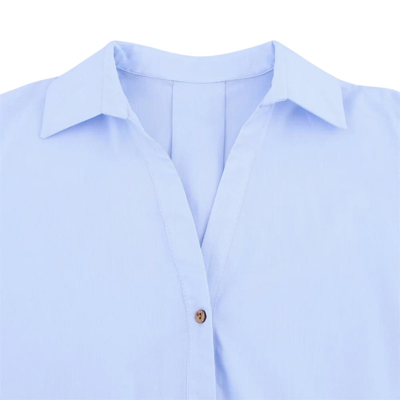 Etusivu Etusivu Vaatteet ja asusteet Naisten vaatteet Naisten kauluspaidat Naisten vapaa-ajan kauluspaidat Tyylikäs naisten lyhythihainen paita Yksivärinen pusero kauluksella ja nappikiinnityksellä Kevyt väljä toppi polyesteristä työhön ja vapaa-aikaan