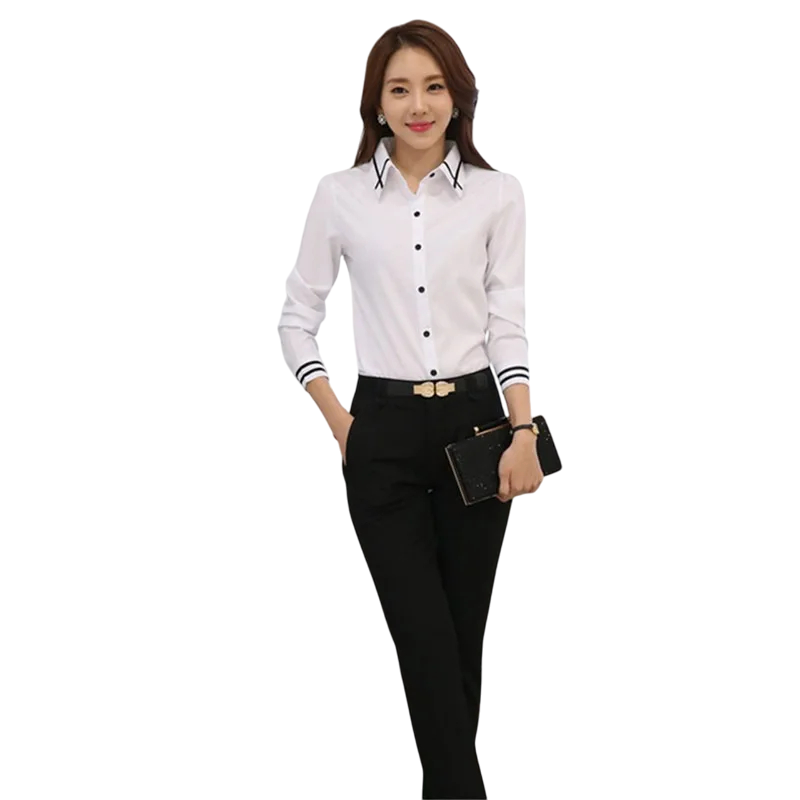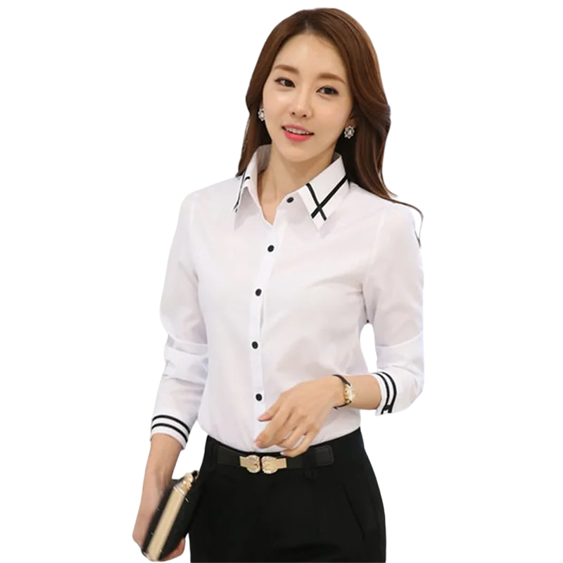 Etusivu Etusivu Vaatteet ja asusteet Naisten vaatteet Naisten kauluspaidat Naisten vapaa-ajan kauluspaidat Tyylikäs naisten pitkähihaisen paita Yksivärinen polyesteripaita, jossa raidat hihoissa ja kauluksessa Tyylikäs toppi nappisuljennalla