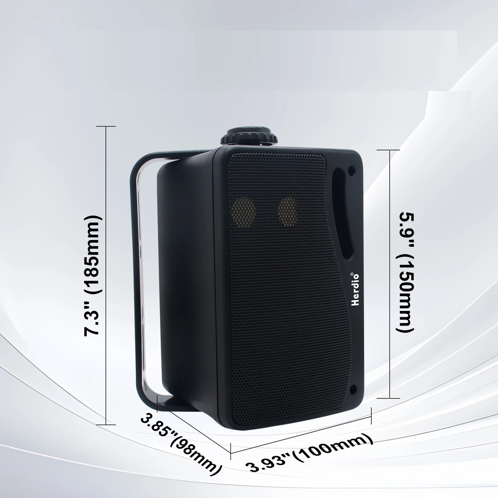 - Yhden kaiuttimen mitat: 11,9 × 9,9 × 18,5 cm (syvyys × leveys × korkeus)