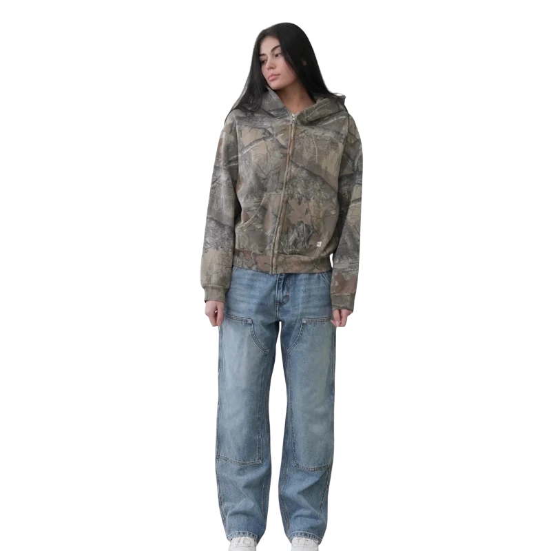 Tämä unisex huppari on täydellinen yhdistelmä tyyliä, mukavuutta ja monikäyttöisyyttä. Valmistettu laadukkaasta polyesterimateriaalista, joka on kevyt, hengittävä ja miellyttävä koskettaa, se tarjoaa optimaalista mukavuutta päivittäisessä käytössä. Moderni camo-kuosi harmaan sävyissä antaa sille elegantin ja urheilullisen ilmeen. Huppu säätönyöreillä suojaa kylmältä ja tuulelta, kun taas vetoketjukiinnitys mahdollistaa helpon pukemisen ja lämmön säätelyn. Huppari sopii sekä naisille että miehille – täydellinen vapaa-aikaan, urheiluun ja kaupunkityyliin.