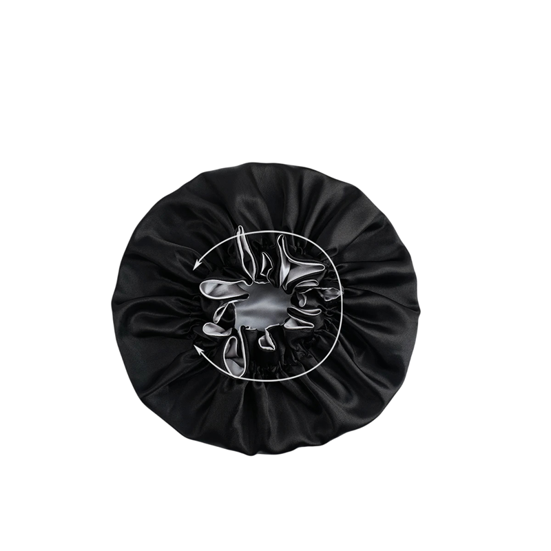 Kaksikerroksinen satiininen yömyssy polyesterista, universaali koko, ihanteellinen hiusten suojaamiseen unen aikana. Sopii miehille ja naisille. Täydellinen kuvaus