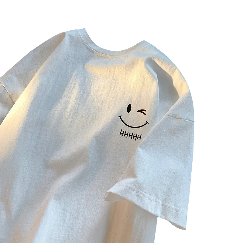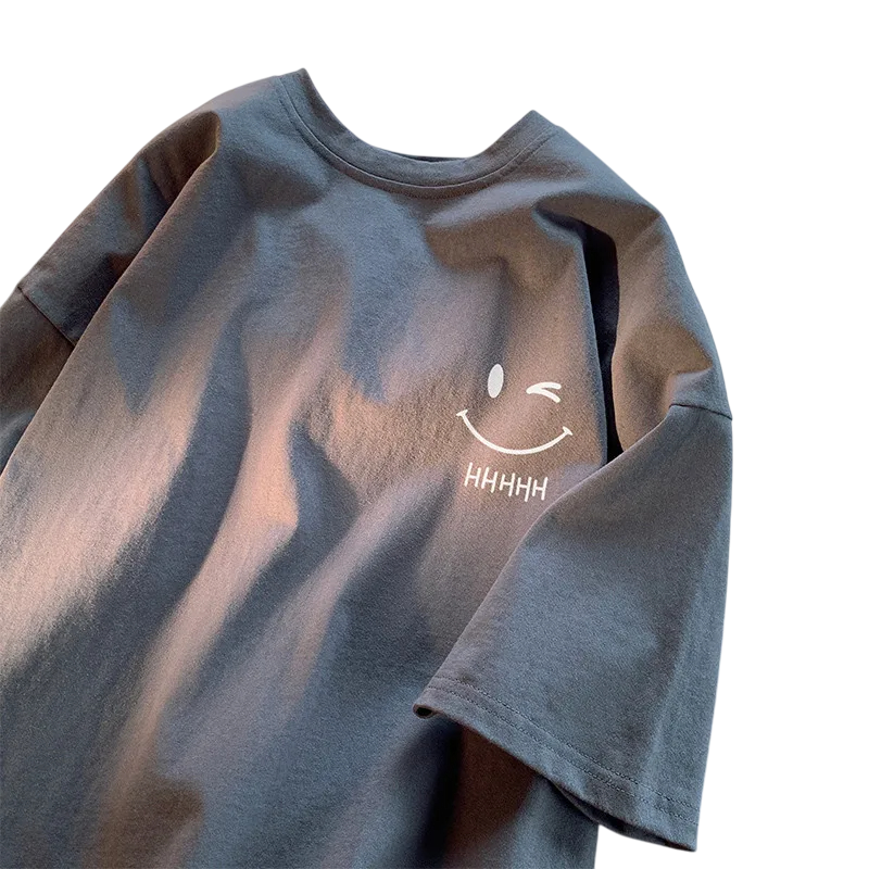 Unisex-t-paita, jossa hymynaamapainatus rinnassa Ylisuuri lyhythihainen t-paita Mukava katumuoti-t-paita vapaa-aikaan ja arkeen