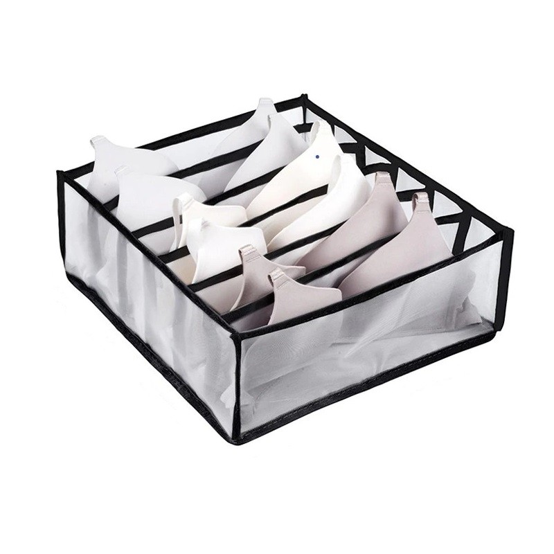 Fiksu tapa järjestää vaatteesi! Siinä on kuusi erillistä lokeroa . Se sopii erinomaisesti pukeutumishuoneeseen tai vaatekaappiin. Järjestäjä on kompakti, joten se ei vie liikaa tilaa . Mittojensa ansiosta se sopii suuremmille tavaroille. Kuitukankaan ja polyesteriverkon rakenne tekee siitä kestävän ja pitkäikäisen.